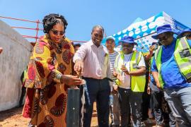 Phase 4 includes an almost complete water pipeline supplying five million litres of water per day to surrounding communities, and 1.5 million litres of reservoir capacity at Montobelo Hospital, serving the Dalibho area, where taps are already flowing.