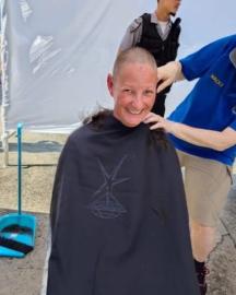 The Alexandria officers have either shaved their heads or spray painted their heads to raise funds for cancer survivors.