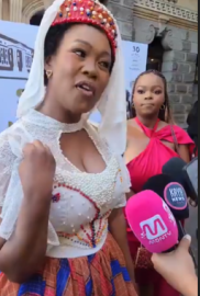“I believe that I must look nice like this, but most importantly, our designers get an opportunity not only to showcase their work, but to create jobs,” said Small Business Development Minister Stella Ndabeni as she stepped onto the State of the Nation Address (SONA) red carpet with confidence.