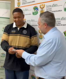 Minister Leon Schreiber has handed over the first Smart ID produced by the Department of Home Affairs and Government Printing Works, which records a Khoi-San traditional name.