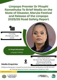 She was addressing the media on the status of floods in Limpopo, the Marula Festival 2026 and the release of the Limpopo 2025/26 Road Safety Report for the festive season.