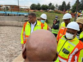 Mahlobo, accompanied by Victor Khanye Executive Mayor Vusi Buda and Nkangala District Executive Mayor Thomas Ngwenya, visited the project site on Monday to assess progress on Phase 2 of the WWTW upgrade.