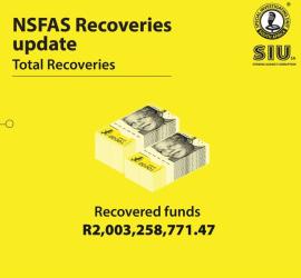 The recovered amount forms part of R2 billion that the SIU has so far reclaimed from universities, Technical and Vocational Education and Training (TVET) colleges, as well as unqualified former NSFAS beneficiaries.