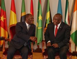 “President Cyril Ramaphosa held a bilateral meeting with His Excellency Alassane Ouattara, President of the Republic of Côte d’Ivoire to discuss matters of mutual interest. The two leaders committed to strengthening bilateral ties and to increase trade between their countries.