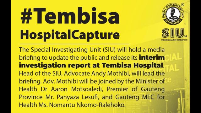 Briefing on the release of the interim investigation report on Tembisa Hospital.