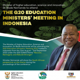 Speaking at the G20 Education Ministers’ Meeting 2022, which is currently underway in Bali, Indonesia, Higher Education, Science and Innovation Minister, Dr Blade Nzimande said South Africa embraces the G20 on Education vision, as contained in the theme under the Indonesia Presidency, “Recover together, recover stronger through education”.