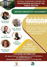 Maserumule, said this at the Editor’s Breakfast Engagement on the National Framework towards the Professionalisation of the Public Sector in Pretoria.