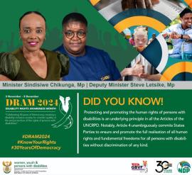 “Aligned with the 2024-2029 Medium-Term Development Framework, which seeks to address current socio-economic challenges, DRAM2024 serves as a bridge uniting South Africans to build a disability-inclusive, barrier-free society.