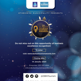 Entries for this year’s awards can be made at https://www.durbantourismawards.com/register and the nominations period ends on January 14.