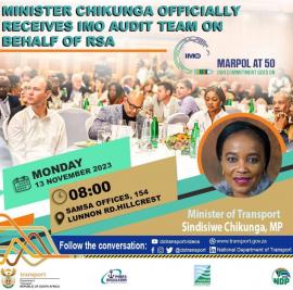 Transport Minister Sindisiwe Chikunga has officially welcomed the International Maritime Organisation audit team who are in the country to conduct a mandatory audit under the IMO’s Member State Audit Scheme (IMSAS).