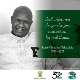 The Chairperson of the Portfolio Committee on Sports, Arts and Culture, Joe McGluwa, has extended the committee’s heartfelt condolences to the family and friends of South African football legend, Stanley “Screamer” Tshabalala.