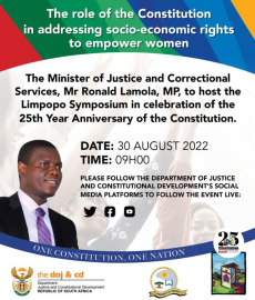 This is according to Justice and Constitutional Development Minister Ronald Lamola who was speaking at the celebration of the 25th Year Anniversary of the Constitution in Limpopo.