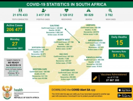 South Africa has recorded at least 3 782 new COVID-19 infections over the past 24-hour reporting cycle, with 15 more fatalities reported.
