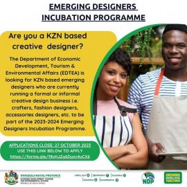 The Department of Economic Development, Tourism and Environmental Affairs (EDTEA) is looking for KZN-based emerging designers who are currently running a formal or informal creative design business, including crafters, fashion designers, and accessories designers, among others, to take part on the incubation programme.