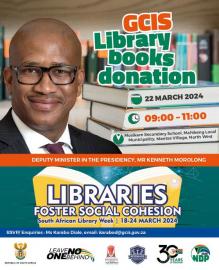 The hand over will take place during South African Library Week (SALW) which is commemorated from 18 to 25 March 2024 under the theme “Libraries Foster Social Cohesion”.