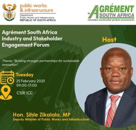 Public Works and Infrastructure Deputy Minister Sihle Zikalala will open the Construction and Built Environment Stakeholder Forum and Expo in Pretoria, on Tuesday.