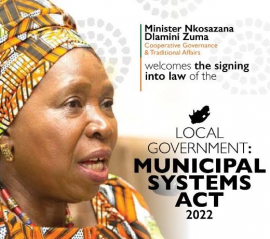 Cooperative Governance and Traditional Affairs (CoGTA) Minister, Dr Nkosazana Dlamini Zuma, has welcomed the signing into law of the Local Government: Municipal Systems Amendment Act, 2022.