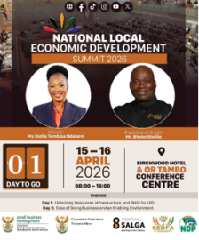 Against this backdrop, Government will host the National Local Economic Development (LED) Summit from 15 to 16 April 2026 at the Birchwood Hotel and OR Tambo Conference Centre under the theme, “Re-engineering Local Economies: A Collaborative Blueprint for Small Enterprise Growth and Ease of Doing Business.”