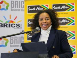 The Deputy Director-General of Exports at the Department of Trade, Industry and Competition (dtic), Lerato Mataboge, said at the BRICS [Brazil, Russia, India, China and South Africa] Business Editors’ Breakfast, which was held in Johannesburg on Monday, that the summit is an opportune platform to have a robust conversation on “issues of diversifying exports towards value added trade, increasing productive capacities, increasing entrepreneurial opportunities and the skills dividend”.