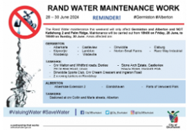 The City of Ekurhuleni has reminded residents of the planned maintenance work by Rand Water that will affect their areas over the weekend.