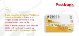 However, the Payment Association of South Africa (PASA) announced last month that it has extended the validity of expired SASSA/Postbank Gold Cards until 31 December 2023.