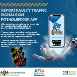 A new feature on the Gauteng Department of Roads and Transport’s #PotholeFixGP App now allows users to report faulty traffic signals.