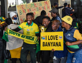 Scores of jubilant supporters welcomed Banyana Banyana back home from Morocco after the players beat Morocco 2-1 at WAFCON on Saturday. They arrived on Tuesday at OR Tambo International Airport to a sea of green and gold fans, South African flags and placards.