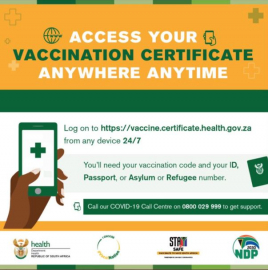 The certificate was developed by the Department of Health and the Council for Scientific and Industrial Research (CSIR) and can be found at https://vaccine.certificate.health.gov.za.