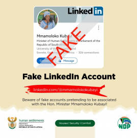 The Department of Human Settlements has warned the public against a fake LinkedIn account purporting to belong to Minister Mmamoloko Kubayi.