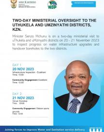 Accompanied by Deputy Minister Judith Tshabalala, Mchunu revisited the two districts during a two-day Ministerial visit held on 20 - 21 November 2023 to inspect progress on water infrastructure upgrades and reveal interventions that he had promised during his last visit.