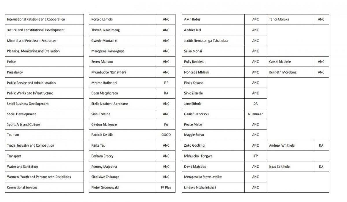 Ramaphosa has decided to make the following appointments to the National Executive: