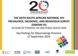 The key findings of the Sixth South African HIV Prevalence, Incidence, and Behaviour Survey (SABSSM VI) for Mpumalanga were released by the Human Sciences Research Council (HSRC) on Tuesday.
