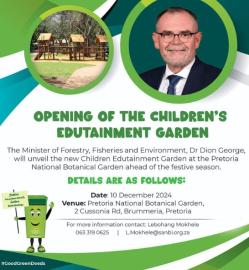 The Minister of Forestry, Fisheries and the Environment, Dr Dion George, has unveiled the new Children’s Edutainment Garden at the Pretoria National Botanical Garden ahead of the festive season.