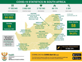 On Sunday, the country recorded 2 281 new laboratory confirmed cases, with 58 new COVID-19 related deaths.
