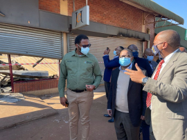 Joined by KwaZulu-Natal Human Settlements and Public Works MEC, Jomo Sibiya; Zululand District Mayor, Thulasizwe Buthelezi; Nongoma Local Municipality Executive Mayor, Albert Mncwango; local councillors and other stakeholders, Nzimande visited Nongoma shopping mall to assess the damage caused by the recent riots, and also interacted with community members at Nongoma taxi rank.