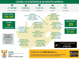 The country also recorded at least 25 more COVID-19 related deaths, bringing the total number of fatalities to at least 90 854.