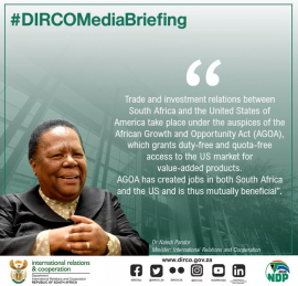 “The US is a major export market for South Africa, a significant source of foreign direct investment (FDI), technology transfer, development assistance and tourism.”