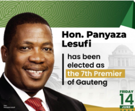 Lesufi was elected unopposed during a Special House Sitting on Friday at the Gauteng Provincial Legislature at the Selborne Hall in Marshalltown, Johannesburg.