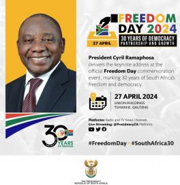 Celebrated Under the theme: “30 Years of Democracy, Partnership, and Growth,” this year's Freedom Month celebrations hold special significance as they also coincide with the 28th anniversary of the enactment of the South African Constitution as the supreme law of the land.