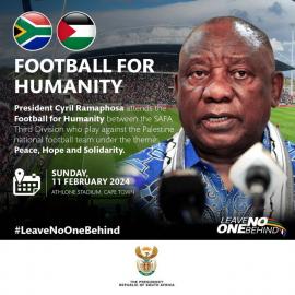 President Cyril Ramaphosa will today attend the Football for Humanity match between the Palestinian national team and the South African Football Association (SAFA) Third Division at Cape Town's Athlone Stadium.