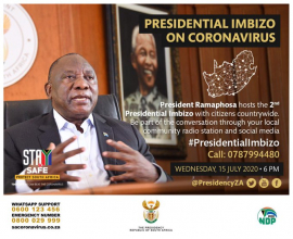 This is the second virtual Presidential Imbizo on Coronavirus, following the inaugural one held on 1 July 2020.