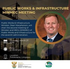 Public Works and Infrastructure Minister Dean Macpherson is set to open the first quarter meeting of the Minister and MECs (MINMEC) for Public Works and Infrastructure in all the nine provinces.
