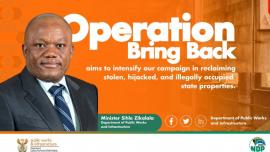 Operation Bring Back is an initiative of the national Department of Public Works (DPW), which aims to recover land and other properties, including farms that were illegally occupied or stolen from the State prior to and immediately after the 1994 democratic transition.