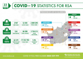 Meanwhile, the NICD reported 2 967 new COVID-19 cases, bringing the total number of laboratory-confirmed cases to 2 889 298.