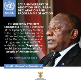 Addressing the 20th anniversary of the adoption of the Durban Declaration and Programme of Action (DDPA), President Cyril Ramaphosa said millions of the descendants of Africans who were sold into slavery remain trapped in lives of underdevelopment, disadvantage, discrimination and poverty.