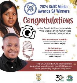 Government has congratulated the two South African journalists who won in two categories in this year’s Southern African Development Community (SADC) Media Awards.