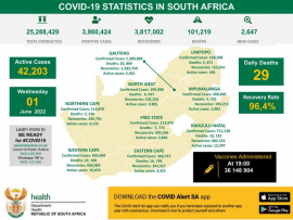 South Africa has recorded 2 647 new COVID-19 cases, bringing the total number of laboratory-confirmed cases to 3 960 424.