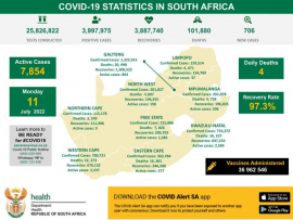 South Africa now has 3 997 975 laboratory-confirmed COVID-19 cases, 702 of which were reported on Monday.