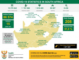 The National Institute for Communicable Diseases (NICD) said a total of 12 270 842 tests have been conducted in both the public and private sectors, with 47 394 tests conducted since the last report.