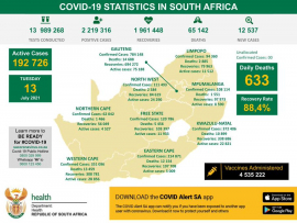 In addition, the country administered 137 421 vaccine doses in the last 24 hours, bringing the total to 4 535 222.